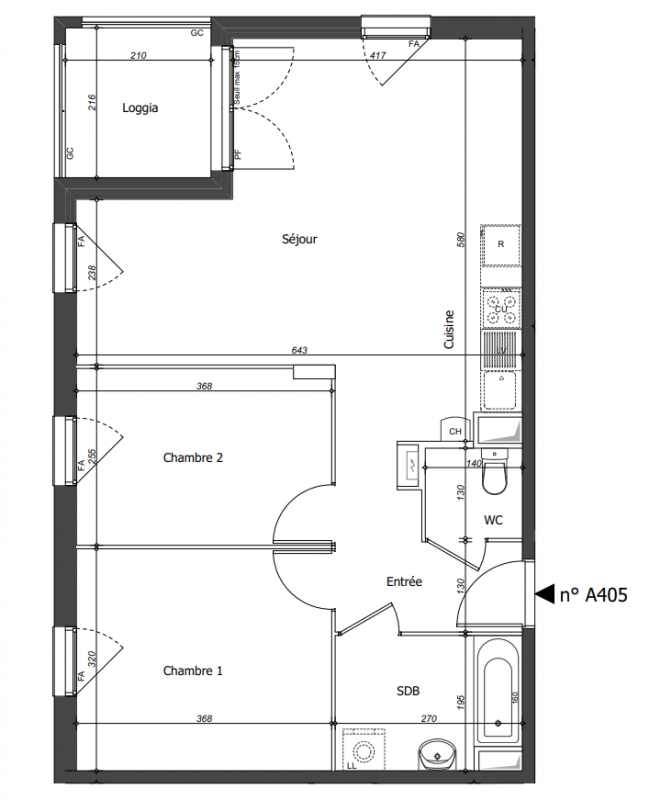 242 600€ Appt. T3 65.73m2 0-RDC