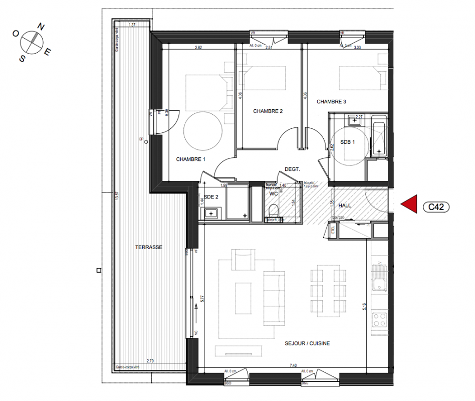 550 000€ Appt. T4 78.04m2 0-RDC