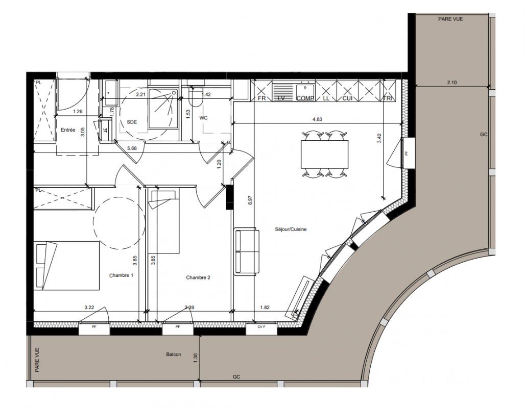 264 000€ Appt. T3 60.16m2 1er
