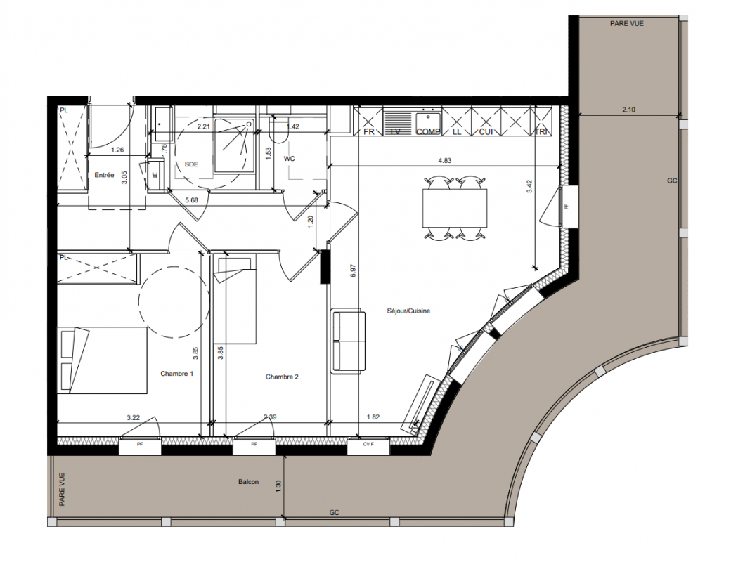 342 000€ Appt. T3 65.11m2 6ème