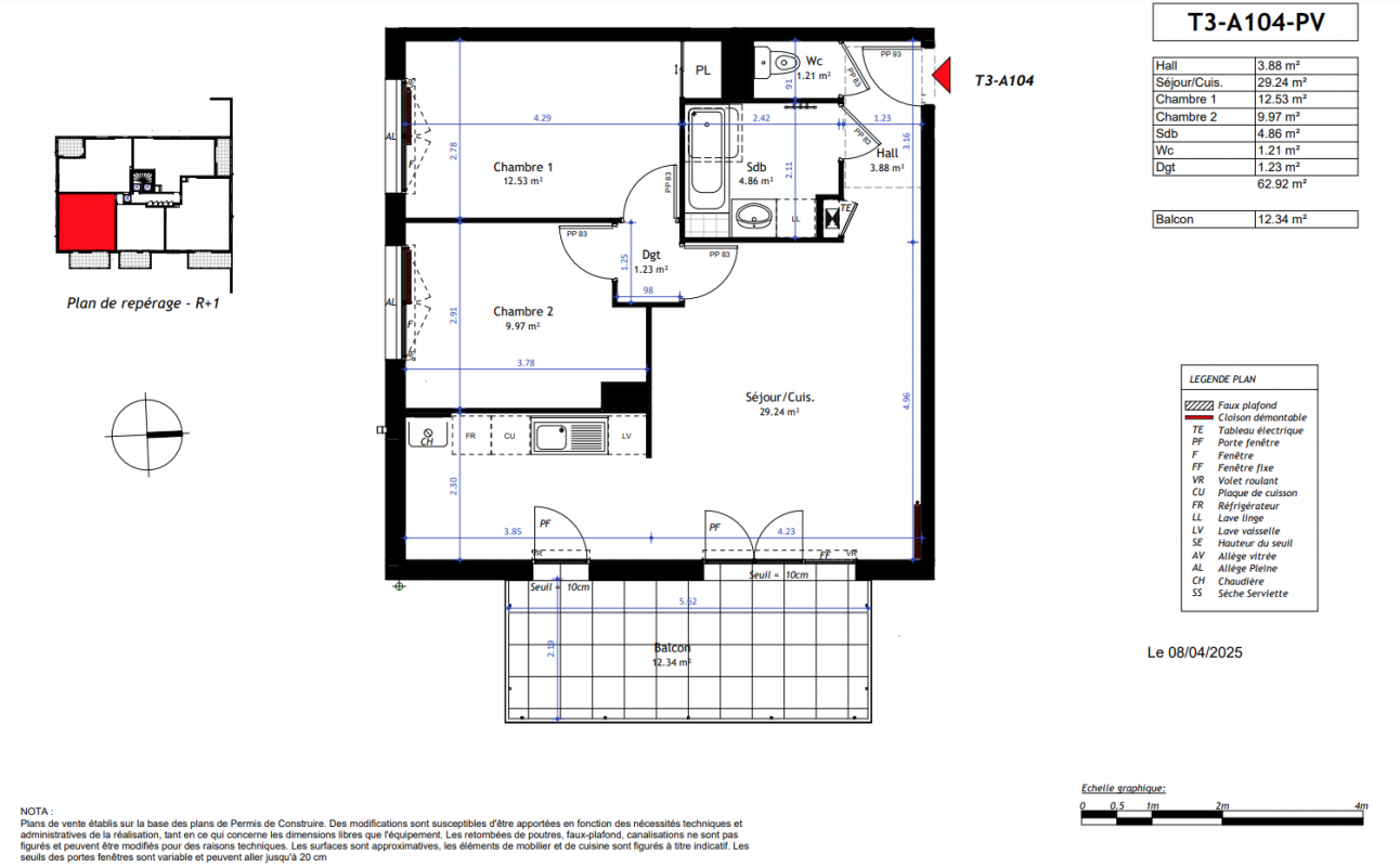 303 000€ Appt. T3 63.4m2 1er