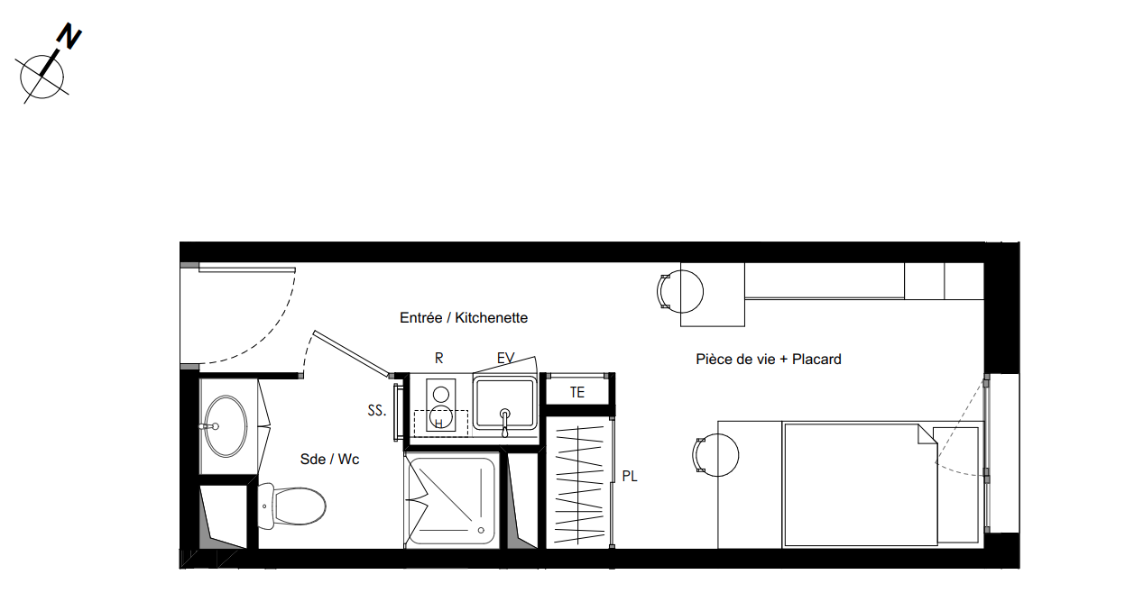 130 800€ Appt. Studio 19.93m2 0-RDC
