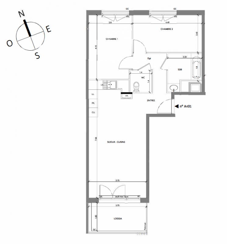225 700€ Appt. T3 61.75m2 3ème