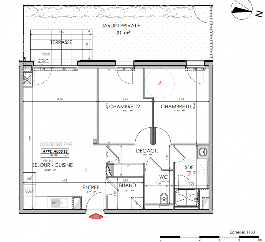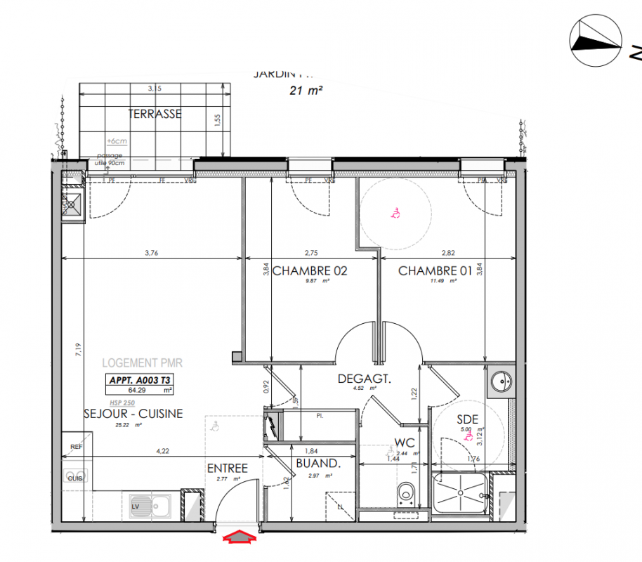 313 000€ Appt. T3 63.39m2 0-RDC
