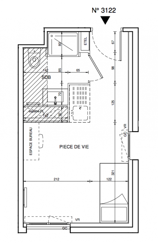 79 222€ Appt. Studio 19.54m2 2ème
