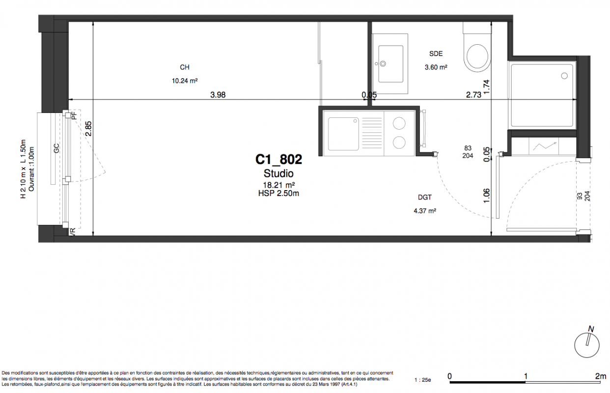 117 120€ Appt. Studio 18.29m2 4ème