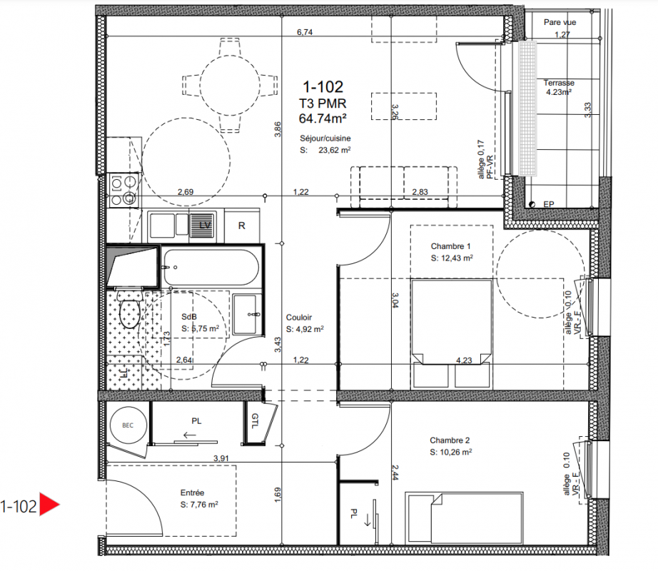 | Voir | Disponible | 169 800€ | 2103 | Appt. | T3 | 69.7m2 | 1er | Disponible | 169 800€ | Voir |