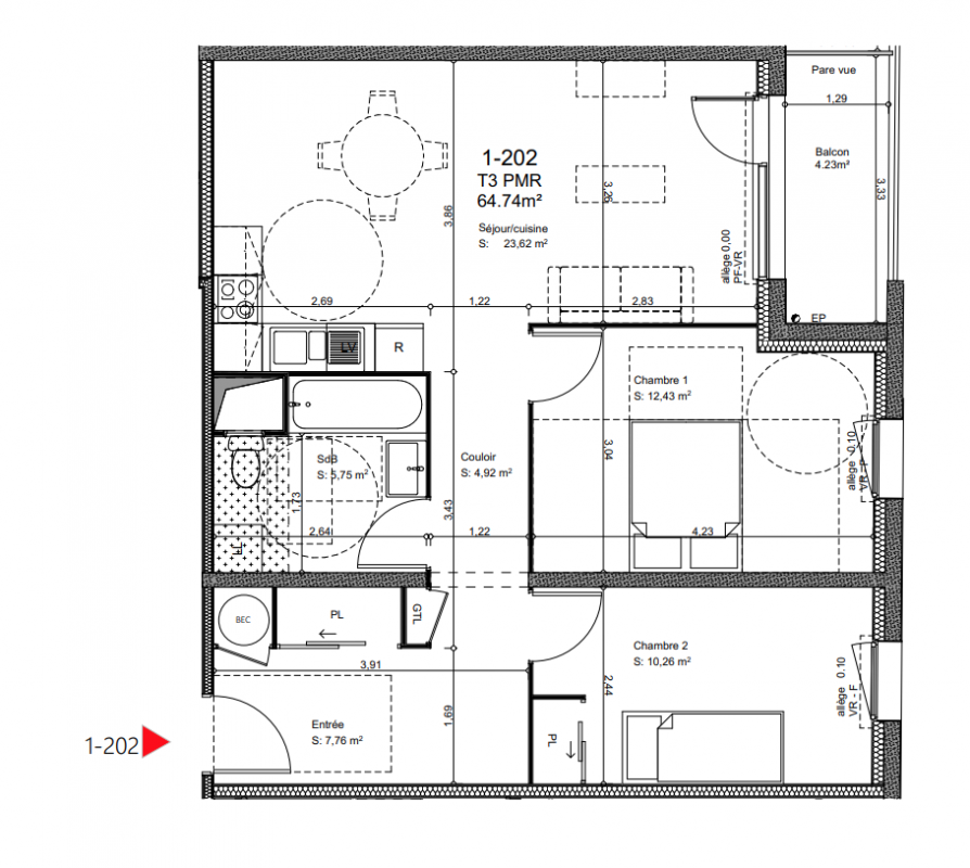 169 200€ Appt. T3 68.47m2 1er