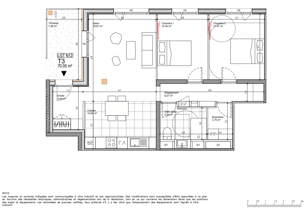 374 000€ Appt. T3 70.05m2 5ème