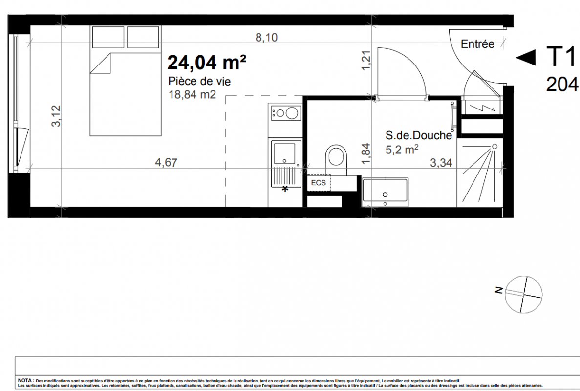 150 000€ Appt. Studio 24.13m2 2ème