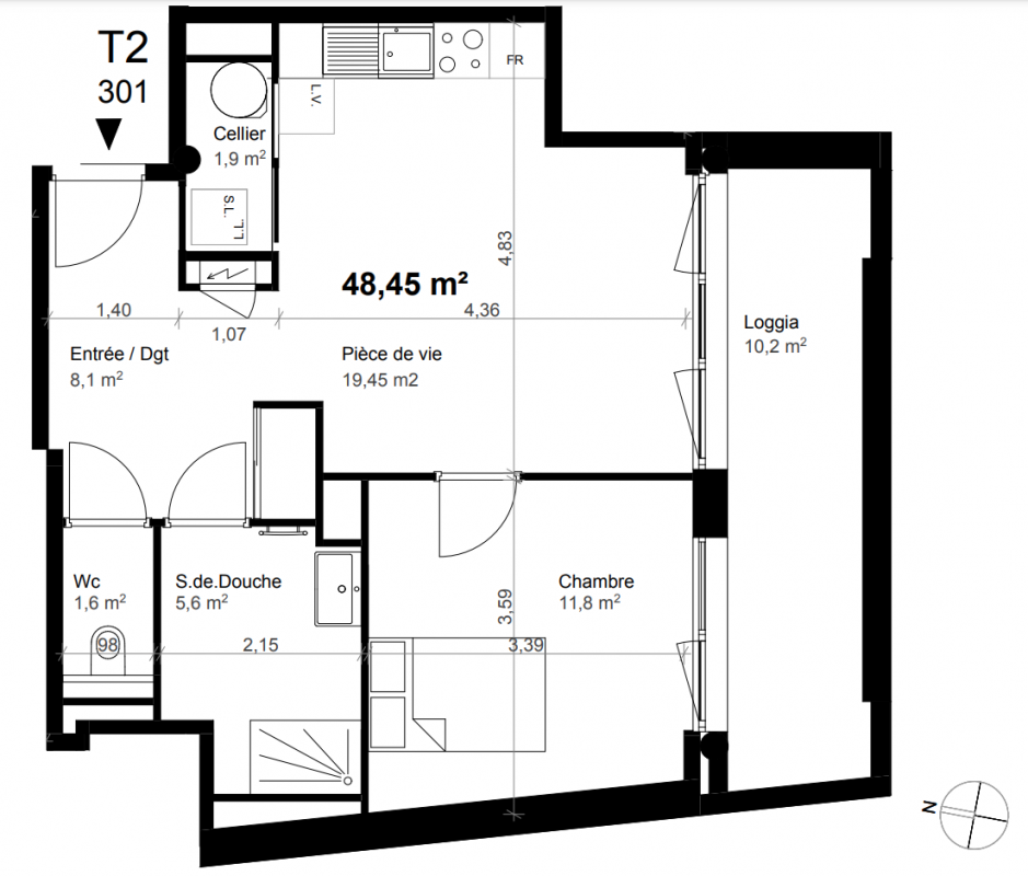 265 000€ Appt. T2 48.33m2 3ème