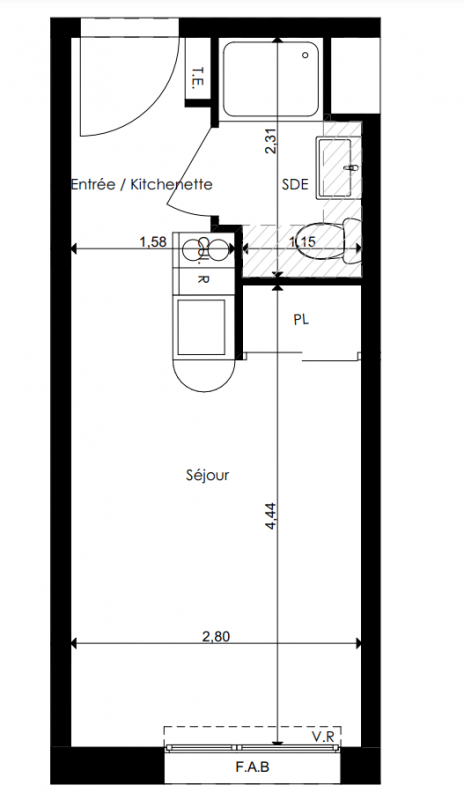 108 695€ Appt. Studio 18.32m2 0-RDC