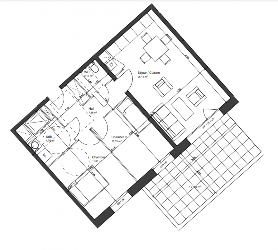 399 000€ Appt. T3 74.29m2 2ème