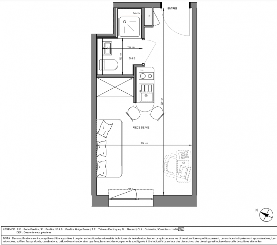 111 636€ Appt. Studio 18.09m2 1er