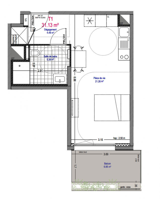 205 000€ Appt. Studio 31.13m2 1er