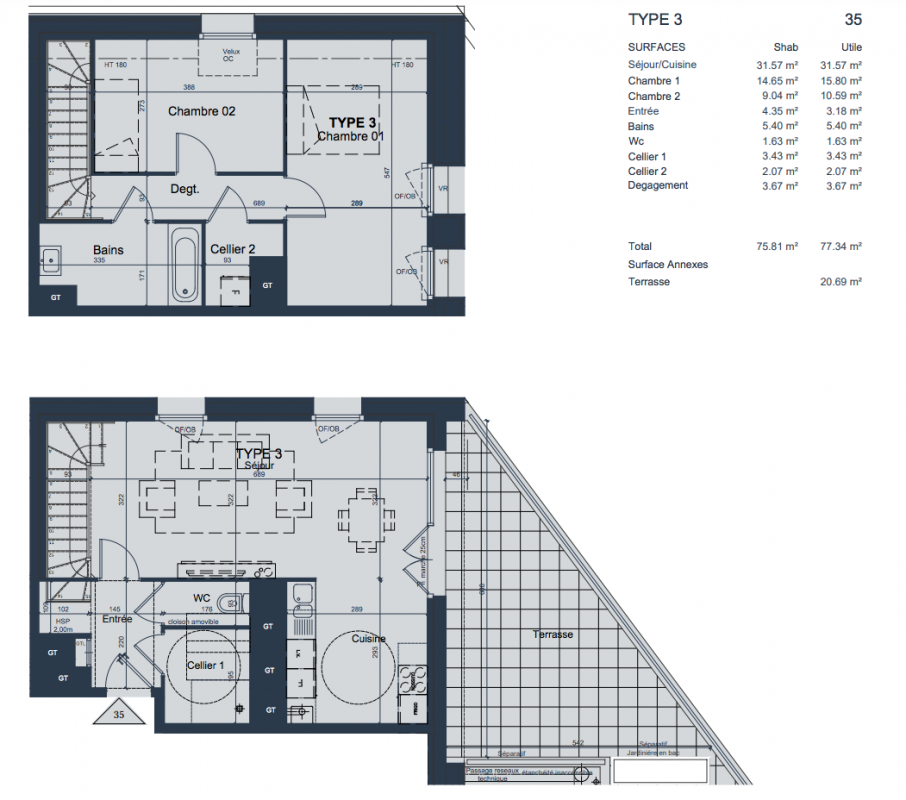 375 000€ Appt. T3 77m2 3ème