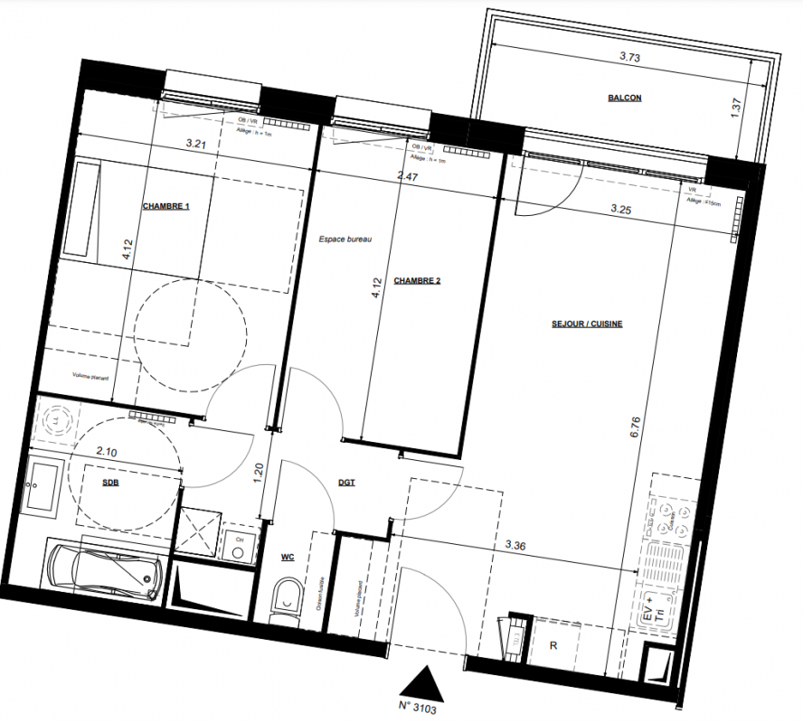 212 701€ Appt. T3 59.02m2
