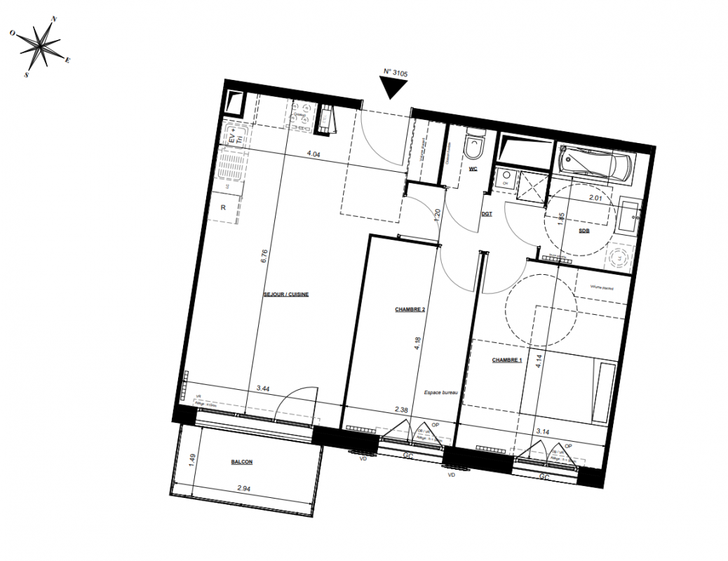 217 251€ Appt. T3 58.75m2 2ème