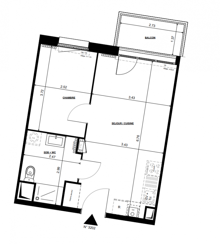 202 464€ Appt. T2 42.1m2 3ème