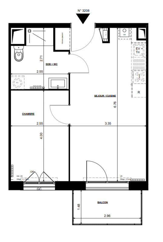 176 303€ Appt. T2 38.3m2 3ème