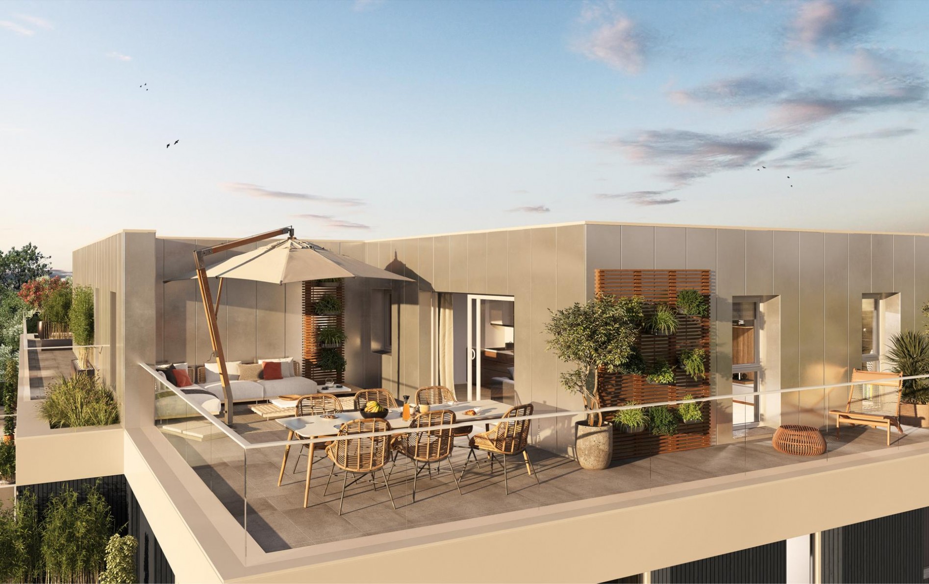 Nichée dans un écrin de verdure, cette résidence s'intègre harmonieusement à son environnement, entre ville et nature.