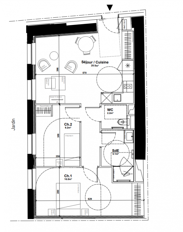 337 993€ Appt. T3 58.3m2 0-RDC