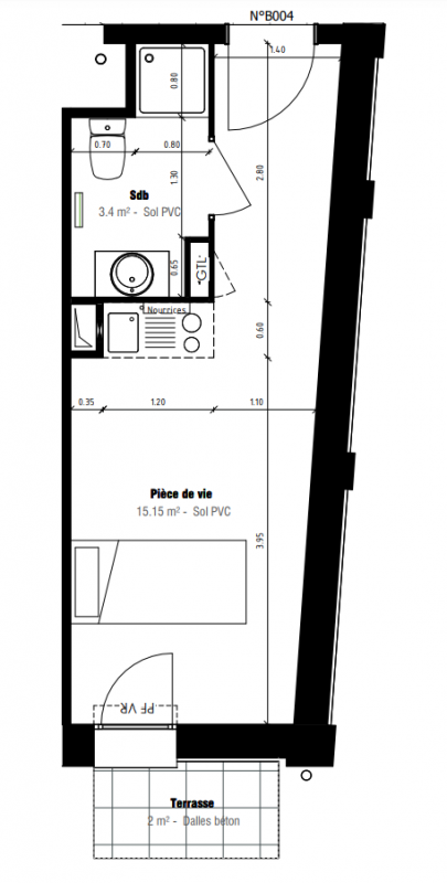 | Voir | Disponible | 105 000€ | B003 | Appt. | Studio | 23.62m2 | 0-RDC | Disponible | 105 000€ | Voir |