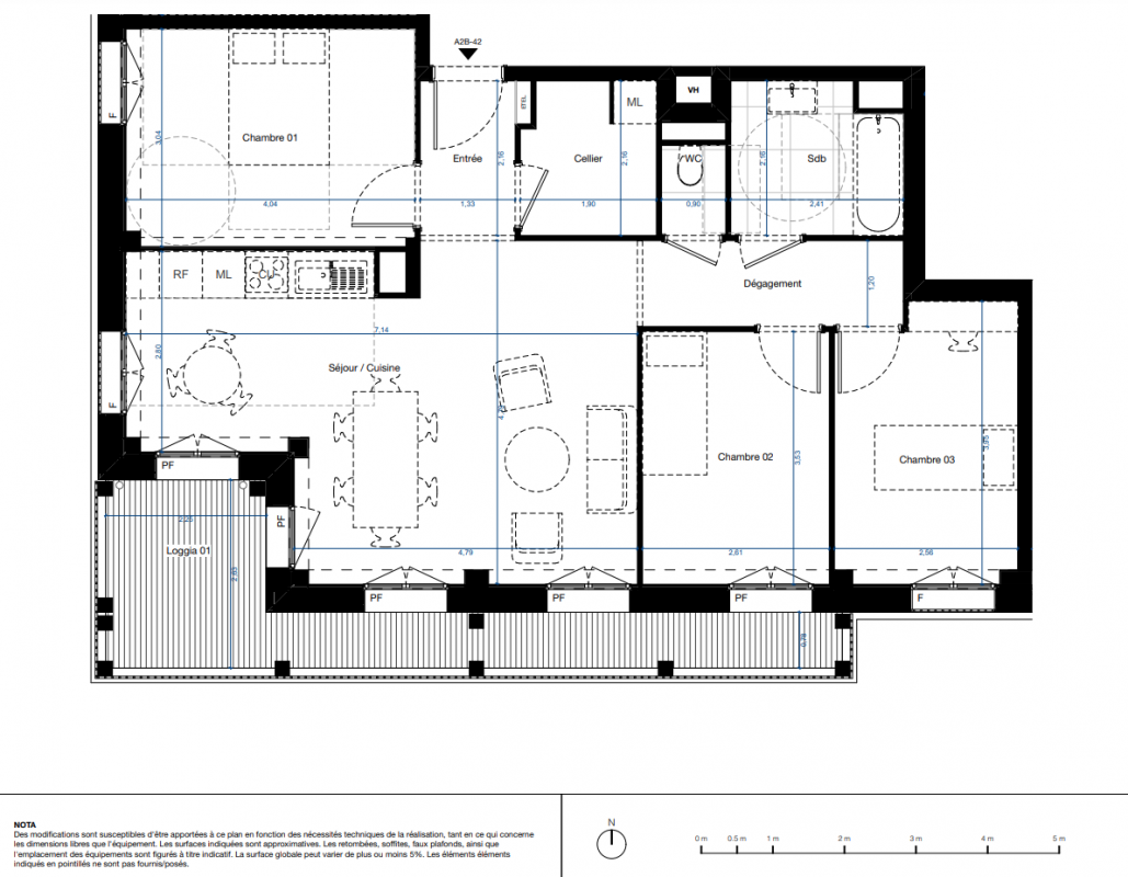 *Pour les logements du bâtiment T1 : brise-soleil à lames orientables.