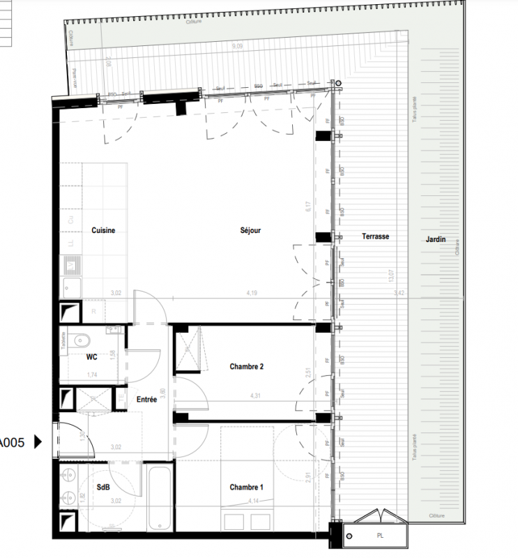 844 120€ Appt. T3 76.36m2 0-RDC
