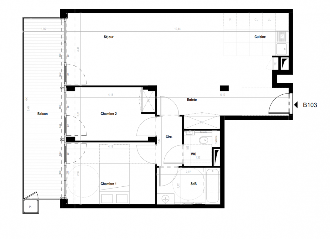 844 120€ Appt. T3 76.36m2 0-RDC