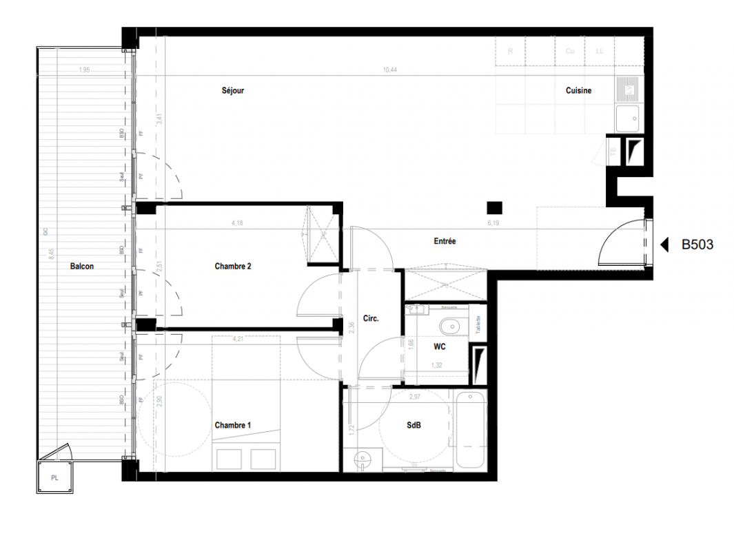 759 520€ Appt. T3 64.43m2 2ème