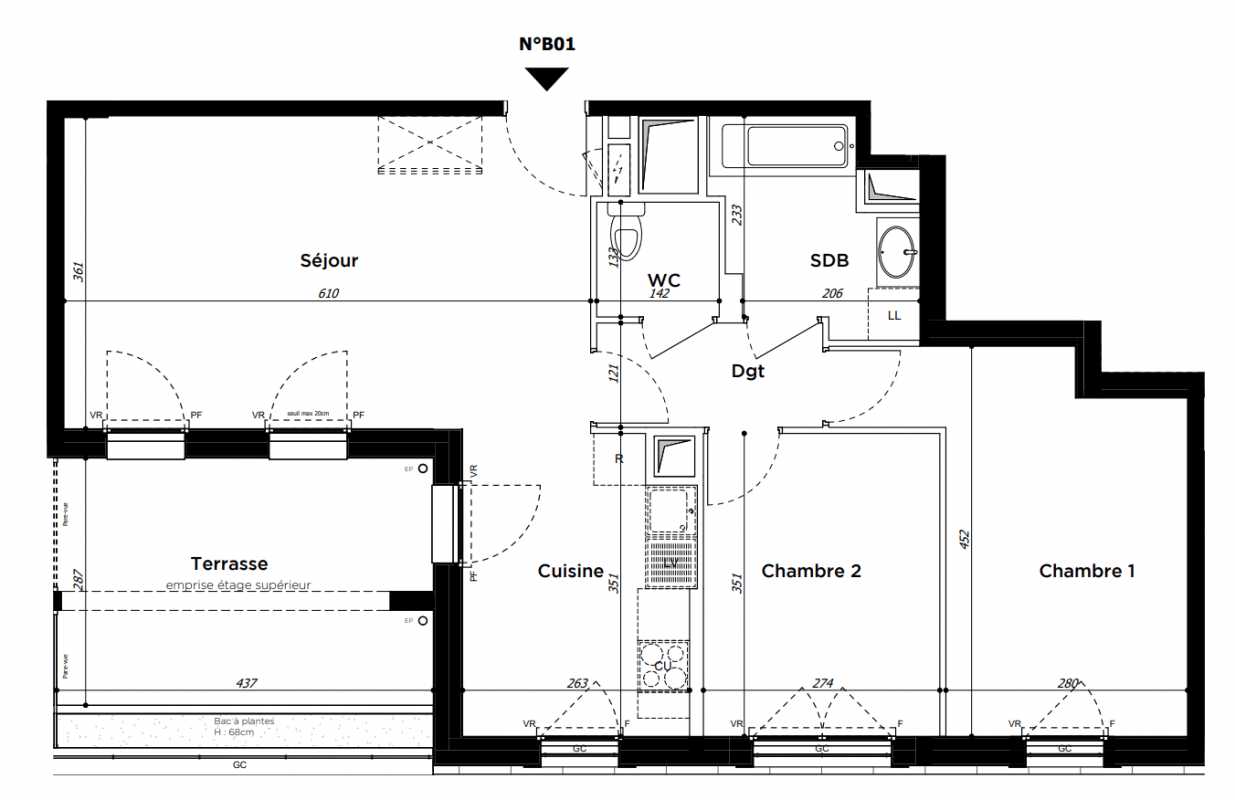 | Voir | Disponible | 411 800€ | A03 | Appt. | T3 | 64.06m2 | 0-RDC | Disponible | 411 800€ | Voir |