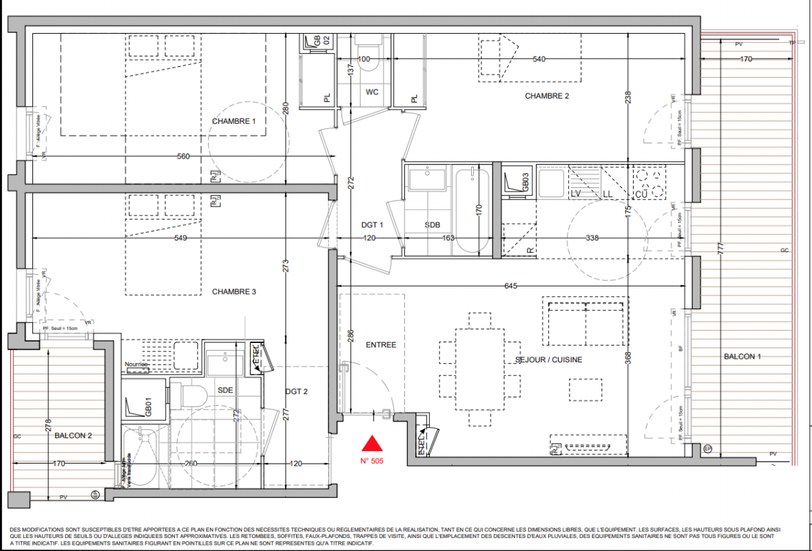 Derniers 2 pièces d'environ 45 m² avec balcon.Appartement 3 pièces d'environ 60 m² avec balcon d'au moins 10 m² et parking pour tous !Appartements 4 pièces EVOLUVIE (concept T3 + T1 indépendant) de 87 m² avec balcon de 13 m² et parking pour tous !