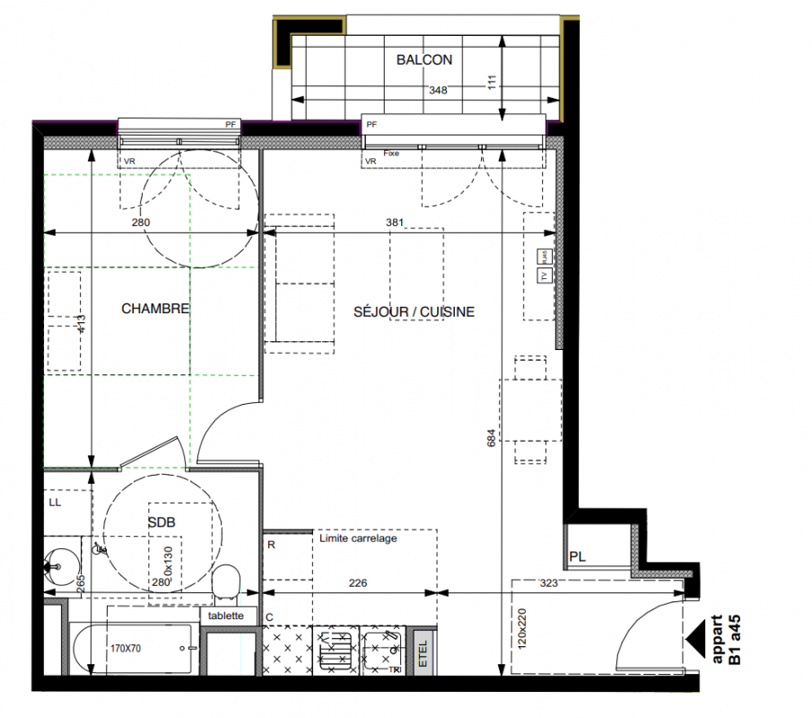 | Voir | Disponible | 356 000€ | B1b61 | Appt. | T2 | 44.3m2 | 0-RDC | Disponible | 356 000€ | Voir |