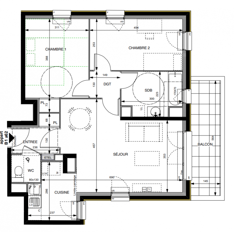 | Voir | Disponible | 414 000€ | B1b62 | Appt. | T3 | 65.3m2 | 0-RDC | Disponible | 414 000€ | Voir |