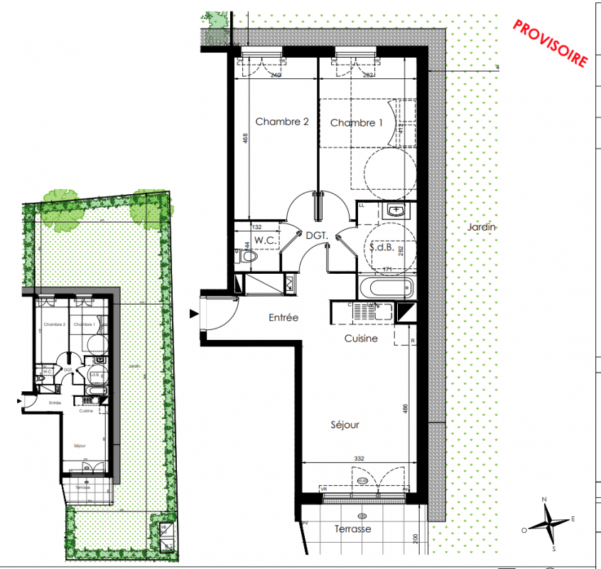 272 000€ Appt. T3 59.46m2 0-RDC
