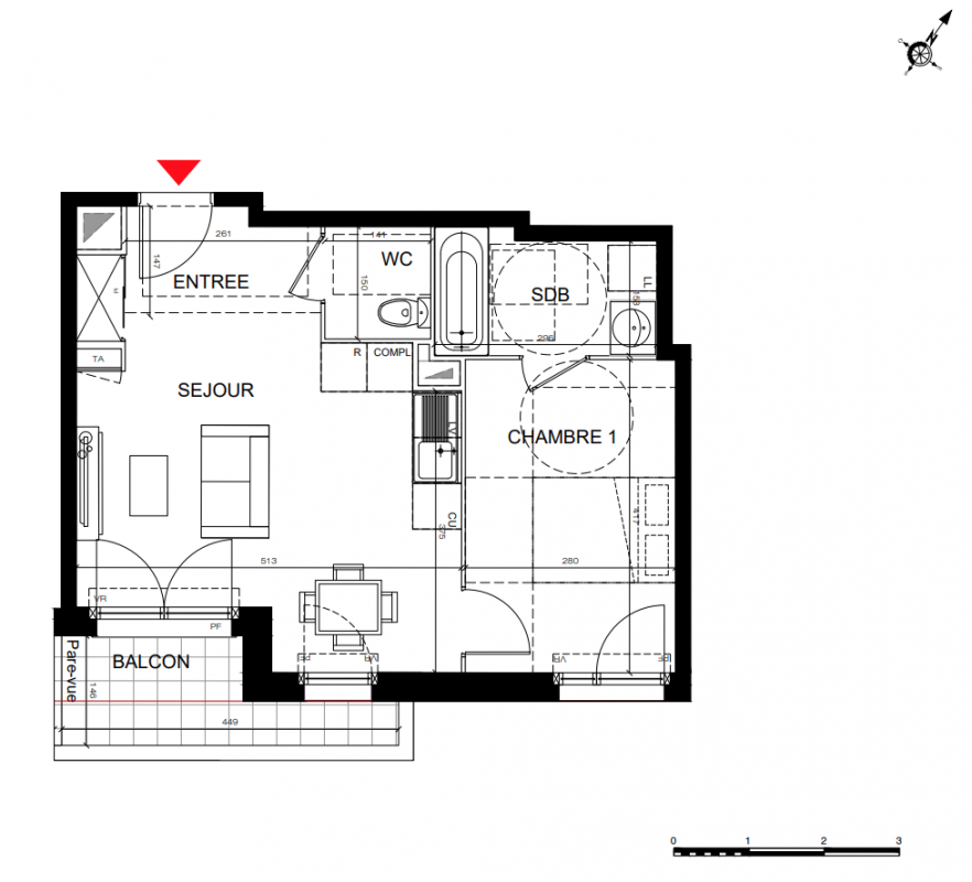 260 474€ Appt. T3 49.39m2 1er