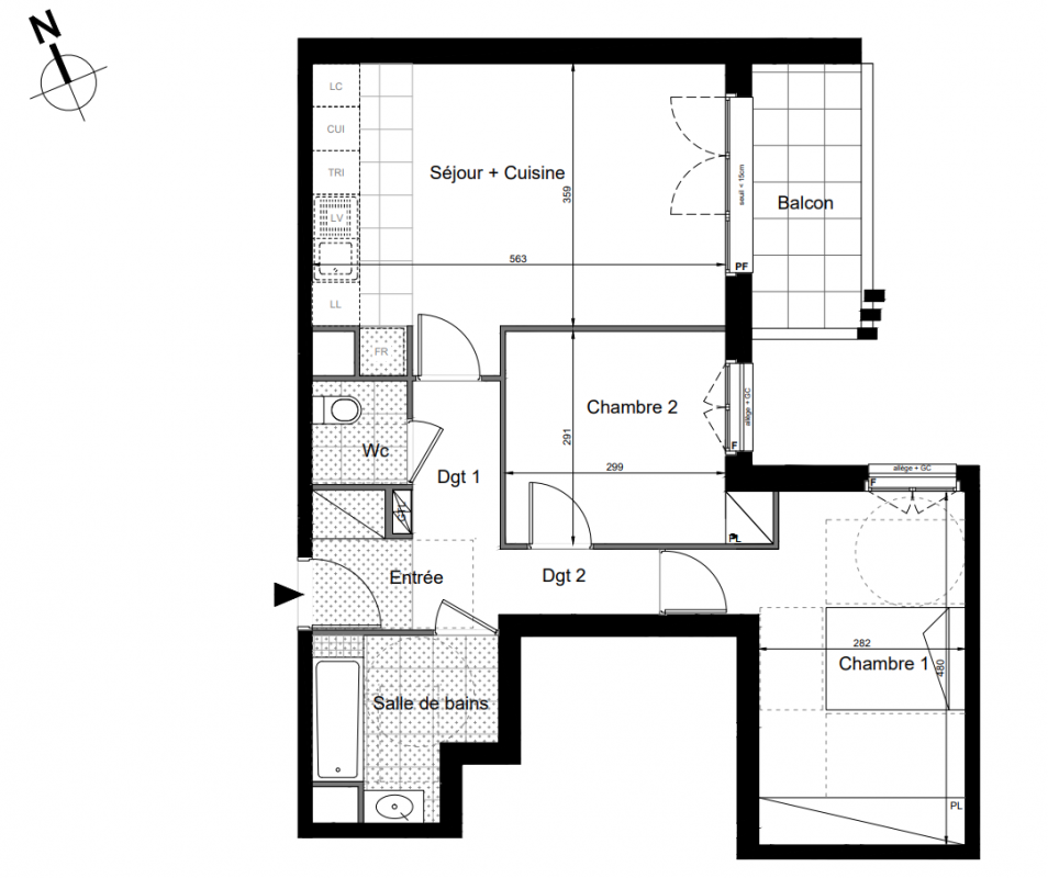 357 750€ Appt. T3 66.1m2