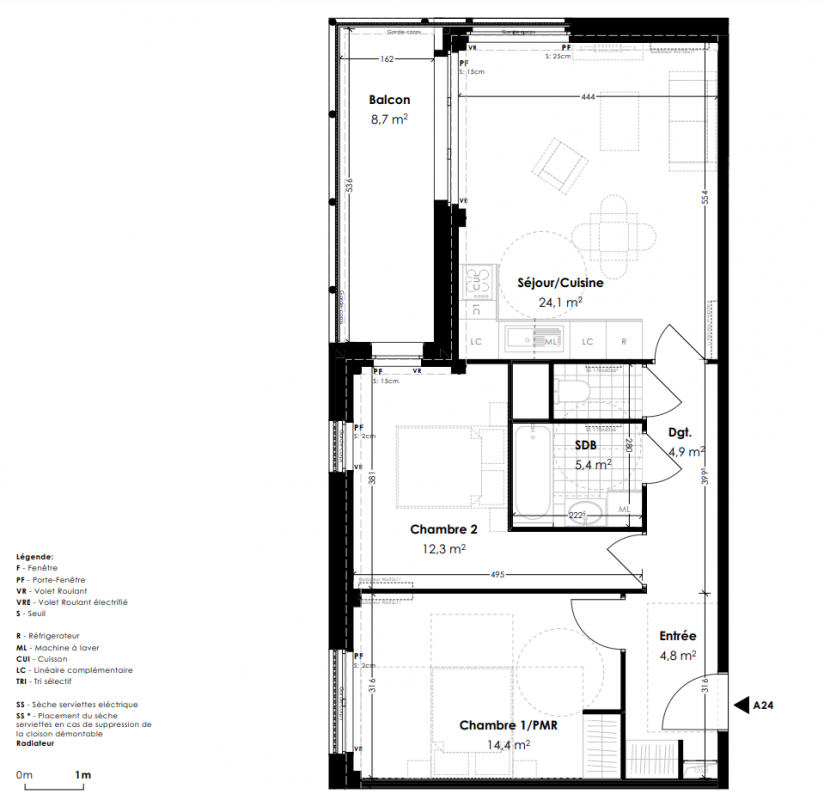 412 000€ Appt. T3 65.8m2 3ème