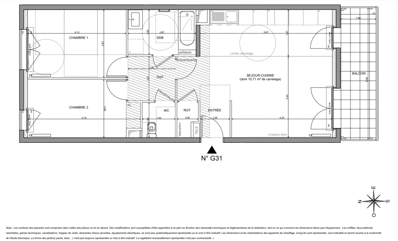 409 479€ Appt. T3 66.59m2 0-RDC
