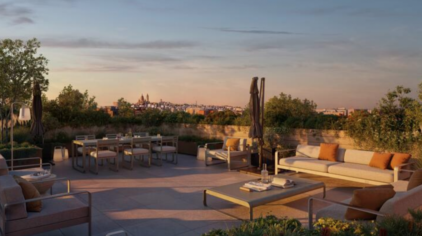 À partir du 7e étage, depuis votre balcon, terrasse ou rooftop privatif, profitez de vues exceptionnelles sur tout Paris, avec le Sacré-Cœur en toile de fond.