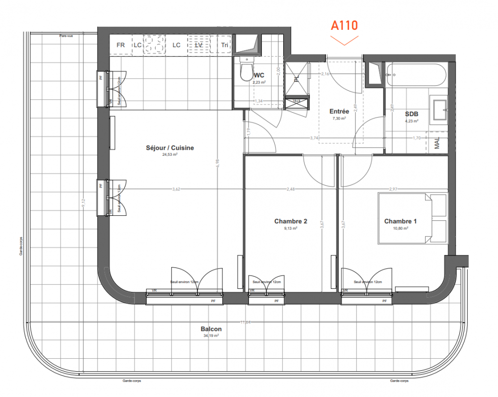 | Voir | Optionné | 326 446€ | A111 | Appt. | T3 | 58.5m2 | 1er | Optionné Mais pas encore vendu 😉 | 326 446€ | Voir |