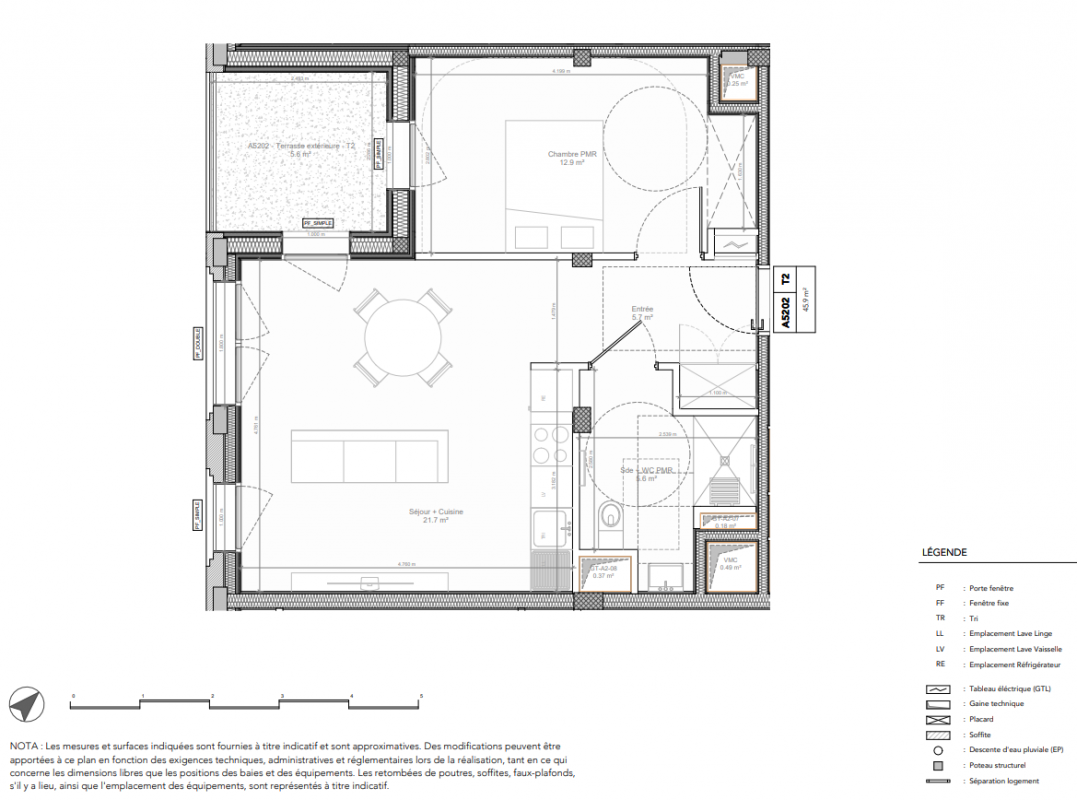 275 900€ Appt. T2 45.5m2 2ème