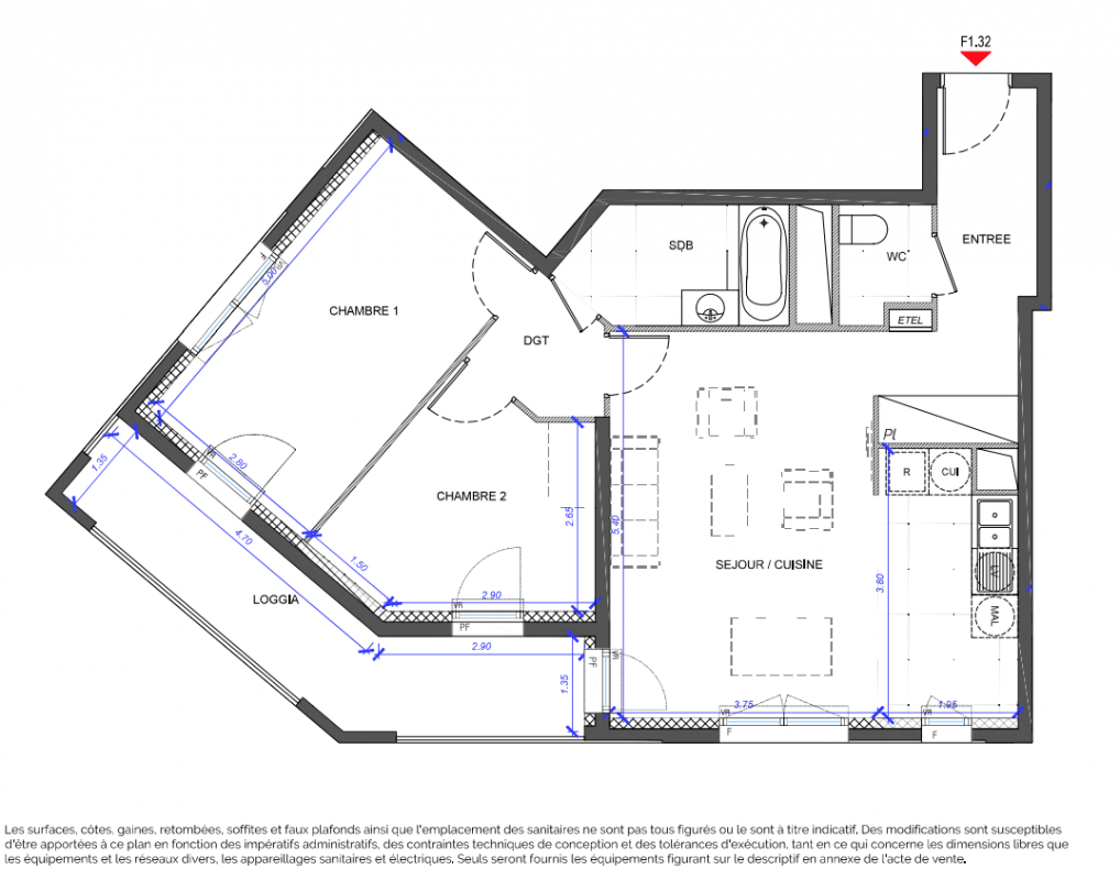 | Voir | Disponible | 417 441€ | F1.24 | Appt. | T3 | 66.2m2 | 0-RDC | Disponible | 417 441€ | Voir |