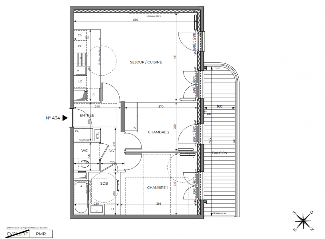 Cloisons épaisseur 7 cm dans l’ensemble des logements