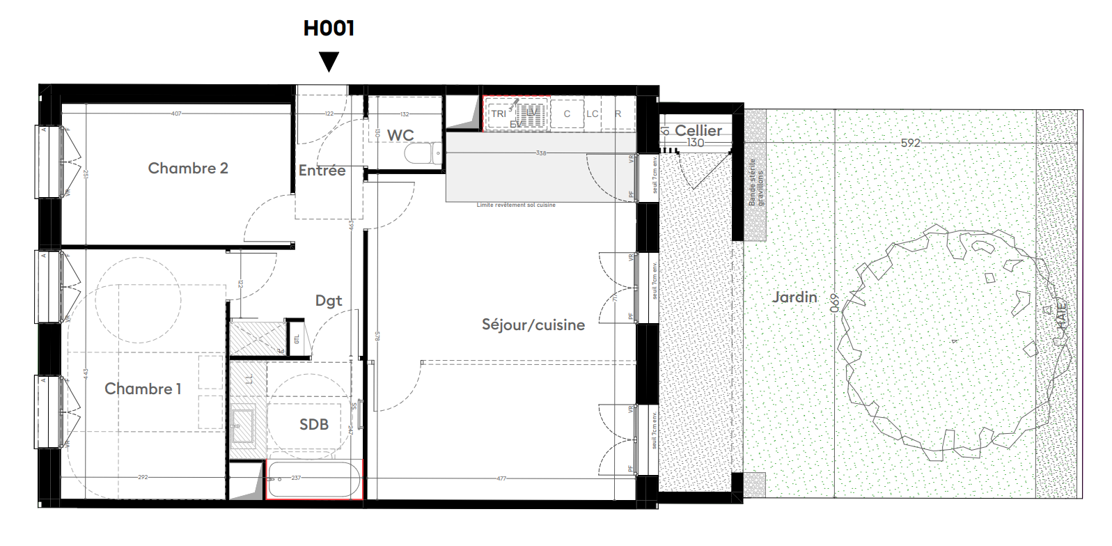324 900€ Appt. T3 66.11m2 0-RDC