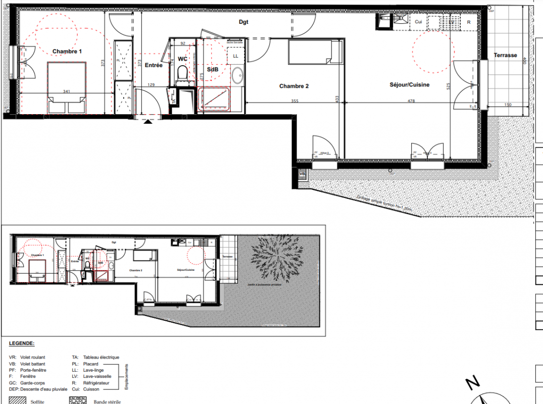 Ascenseur 1 à 2 places privatives de stationnement par appartement, selon typologie du logement