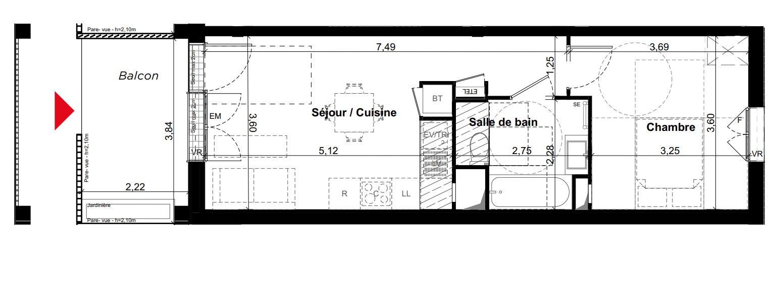 169 900€ Appt. - 38.09m2 0-RDC