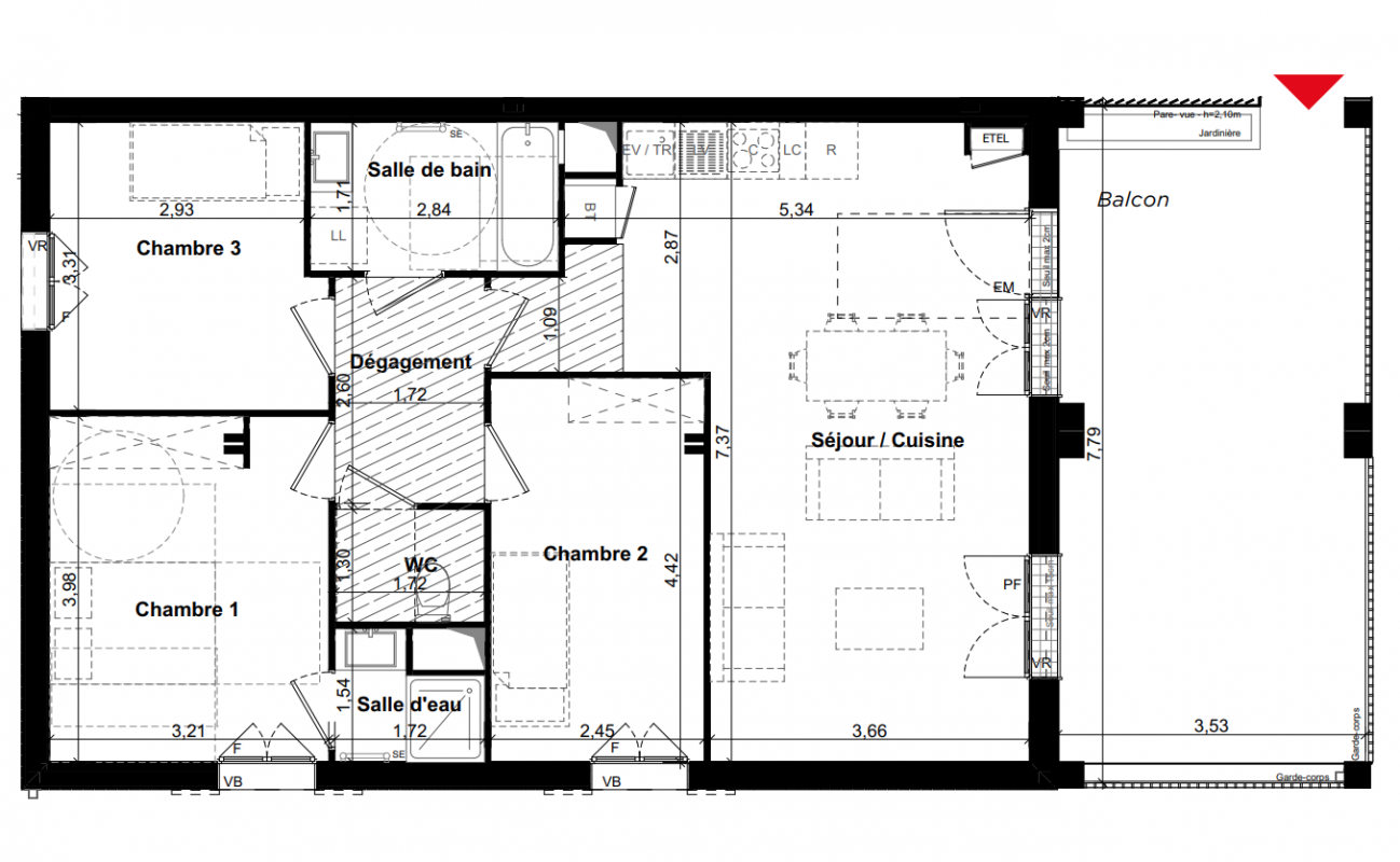 309 900€ Appt. T4 78.82m2 2ème