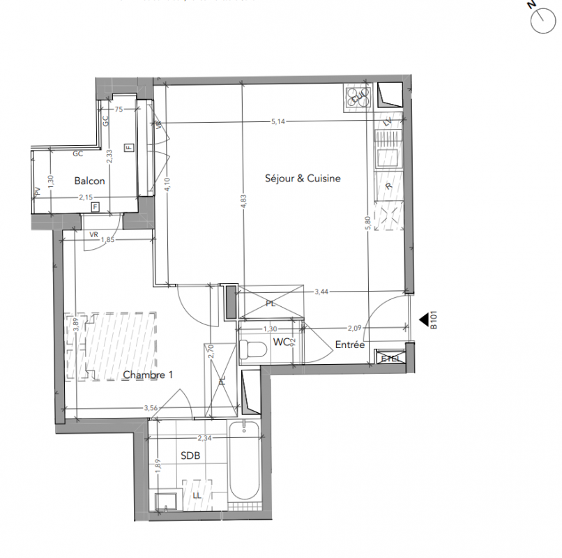 171 000€ Appt. T2 38.3m2 3ème